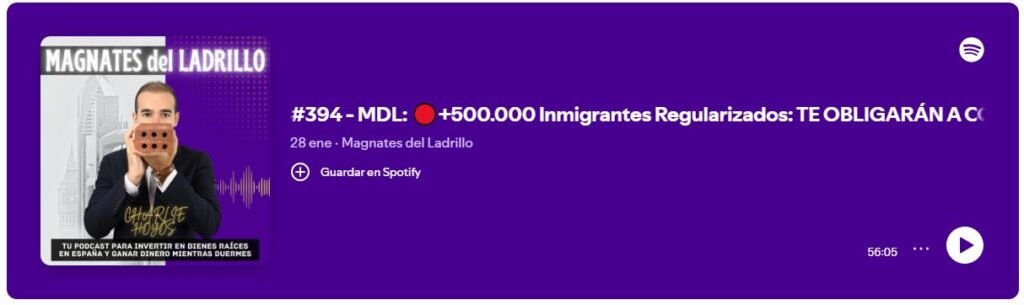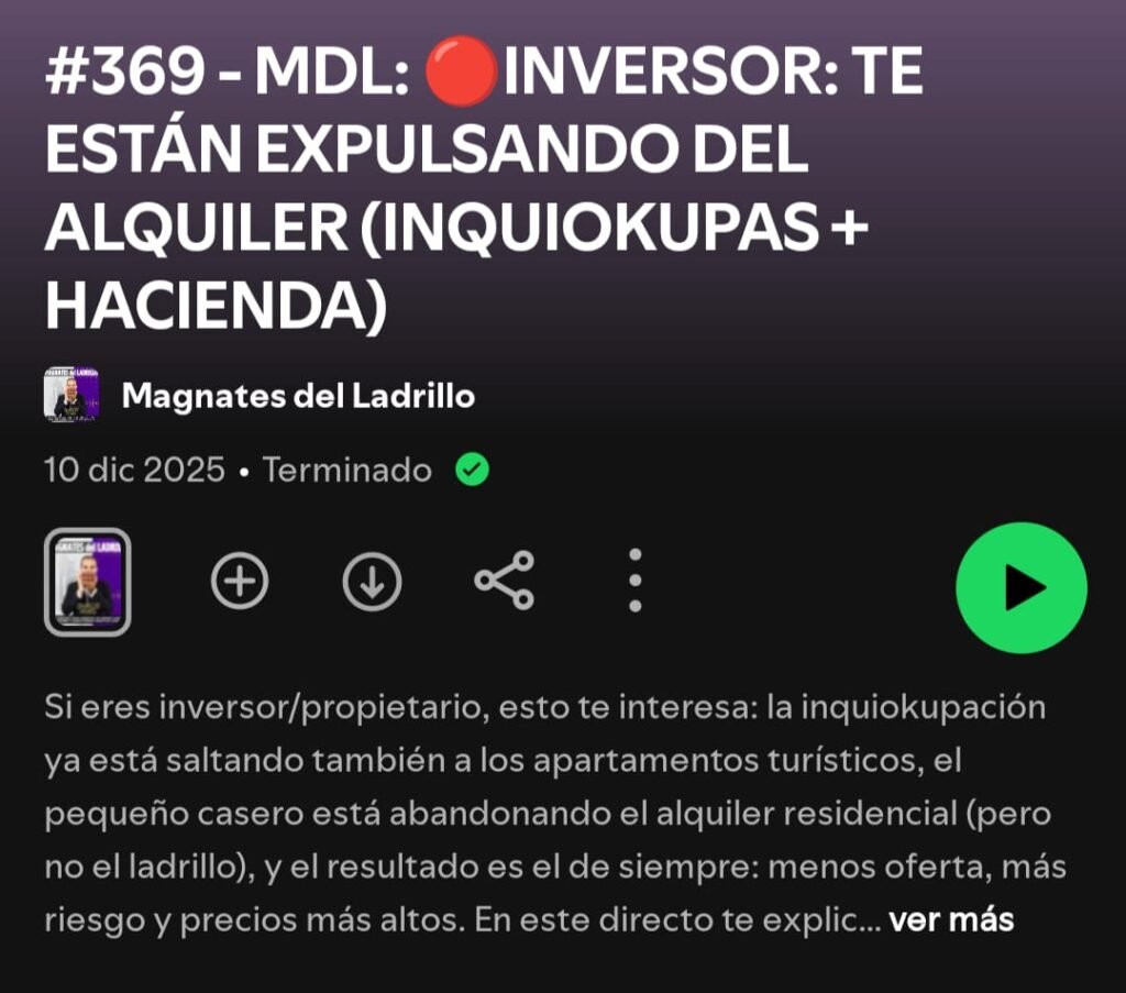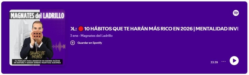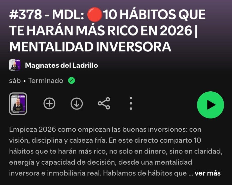Hoy os traigo el Podcast numero #378 de Charlie Hoyos, de Magnates del Ladrillo: https://open.spotify.com/episode/26h1606DHodpe8t6szAAwJ?si=s6ap7ZIHSXqd0ETtHXr6pA Empieza 2026 como…